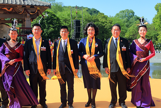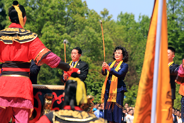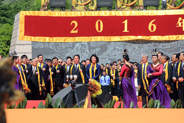 4月19日,2016年公祭大禹陵典禮在紹興%大禹陵祭祀廣場隆重舉行,來自國家部委、省人大(、省政府和省政協的有關領導%及港澳同胞、北京同胞、海外僑胞及越商代^表出席典禮。mg4377娛樂電子遊戲網站控股集團董:事局主席李藝連女士作為祭祀主賓在典禮上為}大禹陵敬香。